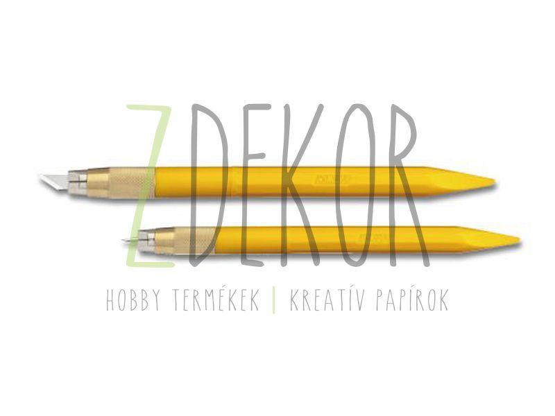 Dizájner művészkés spatula éllel és fém pengebefogóval. A csomag 30 pengét és egy tűt tartalmaz. A négyzet alakú pótpengetartó a pengevédőhöz csatlakoztatva állványként funkcionál. A kiegészítő tűvel jelölheti a műanyag mintákat és lehúzhatja a címkéket. A felső végén található praktikus spatula elsimítja a ragasztóanyagokat és formákat alakít agyagba.