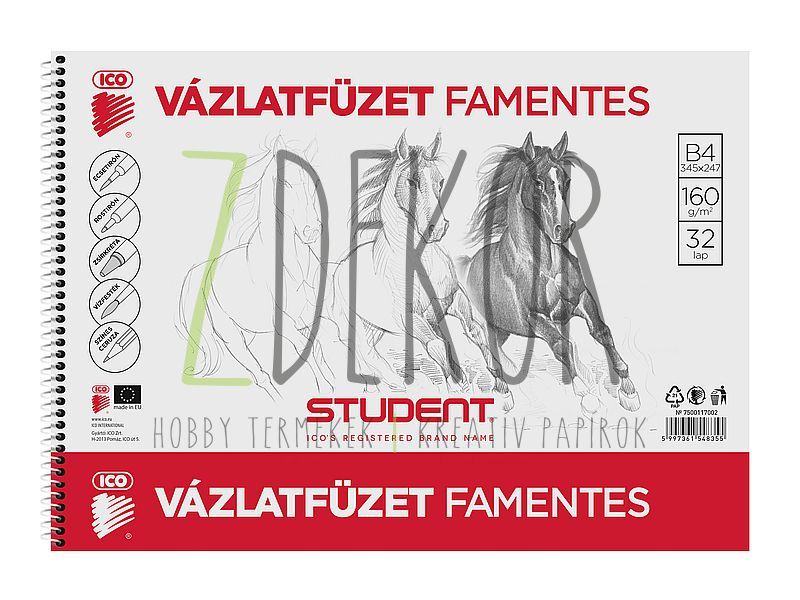 Famentes vázlatfüzet B/4 (345x247mm) méretben. 32 lap, spirálozott kivitel, grafikák, rajzok, vázlatok készítéséhez. 160 g/m2-es lapokkal.